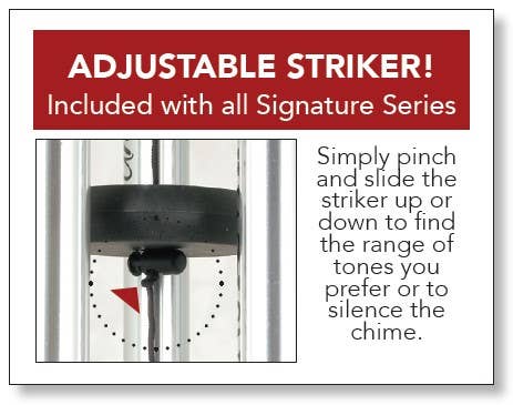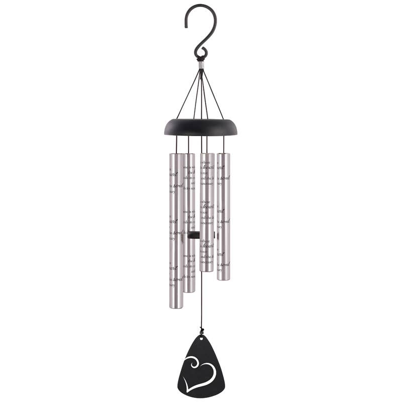 21" sonnet chimes have 4 heavy walled, center pinned tubes that emit sweet gentle tones. All aluminum construction, durable powder coated and anodized finish, and strung with industrial cord. Each chime has an adjustable striker. Tubes are 3/4" diameter, sentiment is printed directly onto the tubes.