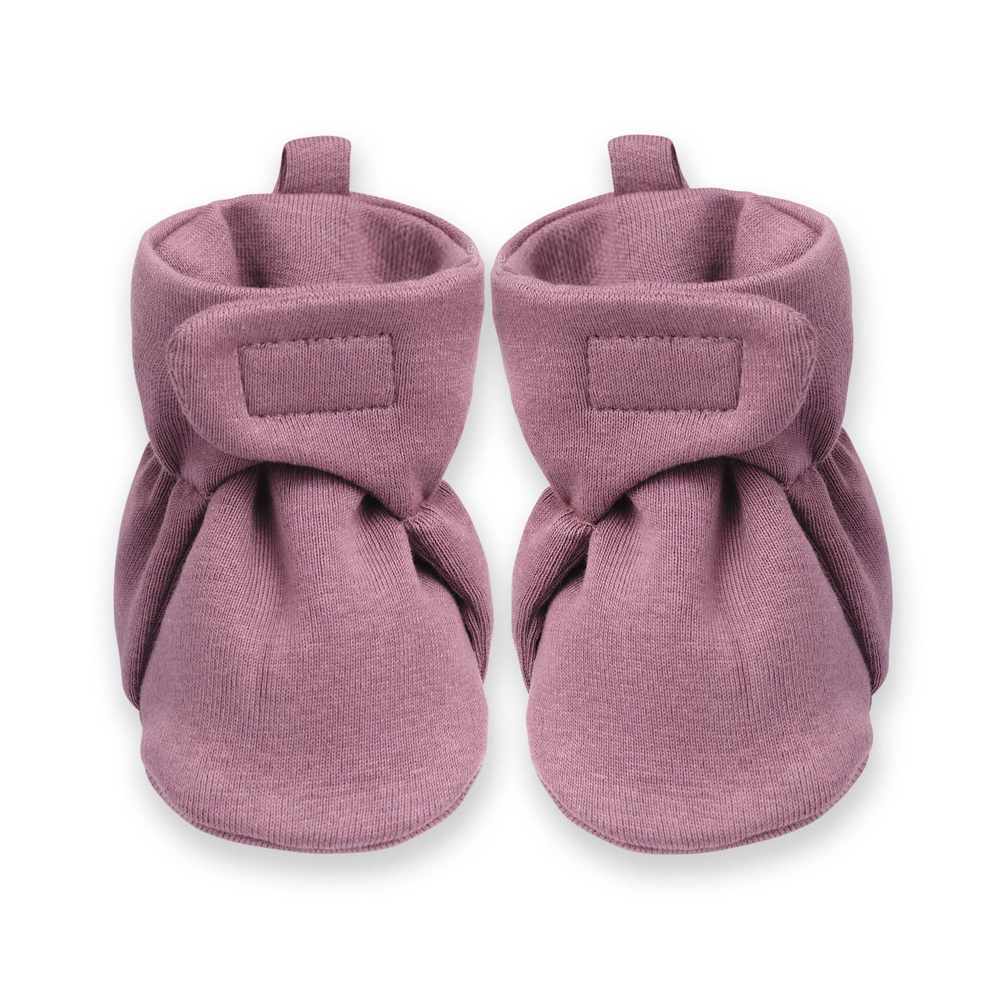 Matching 100% cotton rib booties with Velcro closures; infant one-size fits newborn through 6 months.