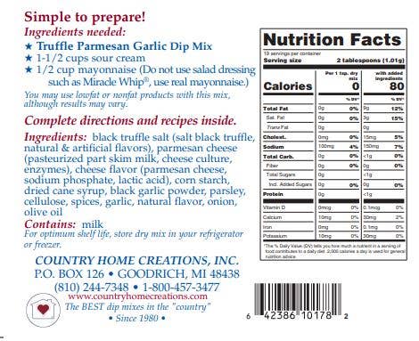 notes of truffle, tangy parmesan, and aromatic garlic, this mix is the perfect sidekick to your favorite snacks and appetizers. Simply mix with your preferred creamy base, and you're ready to go!