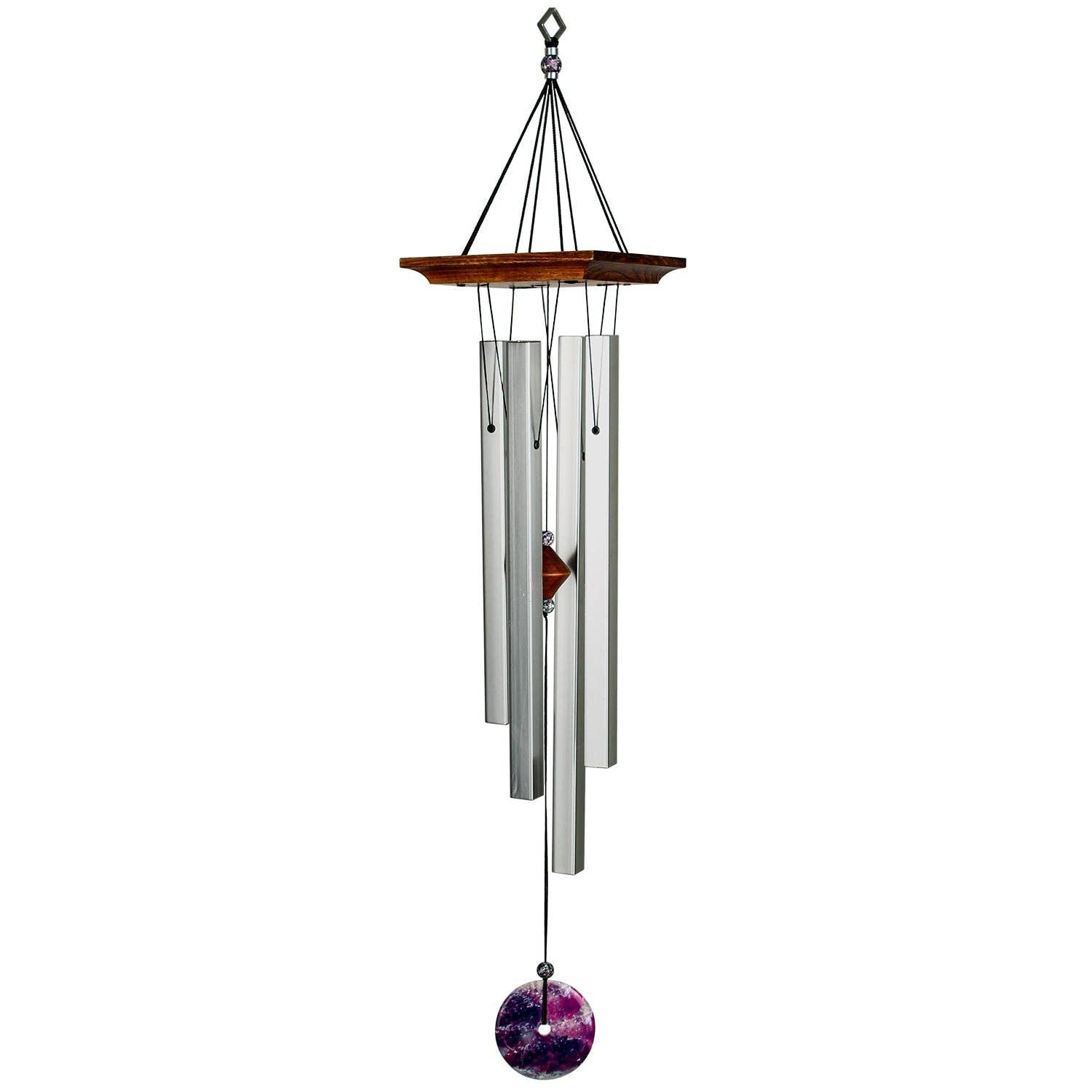 The enchanting sound of this chime is the result of a special tuning using the "Golden Ratio." This ratio, discovered by the ancient Greeks, can be found throughout nature. Amethyst is a purple quartz often used in jewelry. In ancient Greece, goblets were made of amethyst in the belief that it could prevent drunkenness. Amethyst has also been thought to heal people, so medieval European soldiers often wore amethyst amulets as protection. In the metaphysical realm, amethyst is considered a calming stone, used to promote peacefulness, happiness and contentment. May the sweet music of this beautiful chime turn your home or garden into a peaceful oasis.